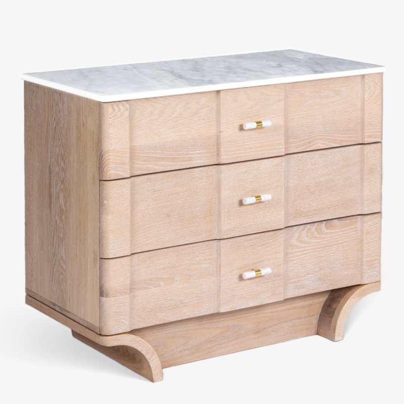 WOODEN 3 DRAWER CHEST WITH MARBLE TOP